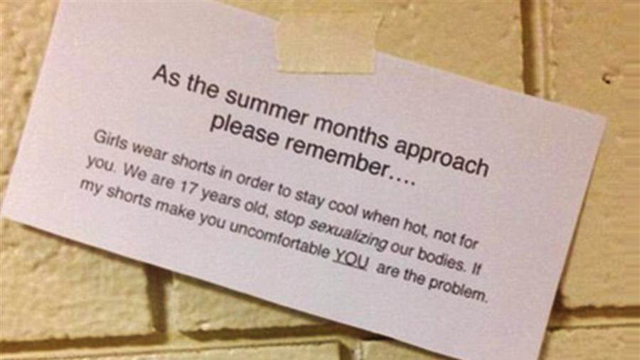 I’ve personally experienced everything from catcalling to sexual harassment in the workplace to sexual assault to rape, and the common denominator wasn’t what I was wearing. It was the men who felt entitled to my body. Dress codes and sermons imposing the responsibility of women to remove temptation from men, rather than men being taught to not sexualize every part of a woman’s body [or a girl’s body,] is perpetuating this culture. This is the reason that in rape cases, victims are asked what they were wearing, or if they were drunk, because their short skirt and rum and coke entitled the rapist to his behavior. They were asking for it, the defense will say.