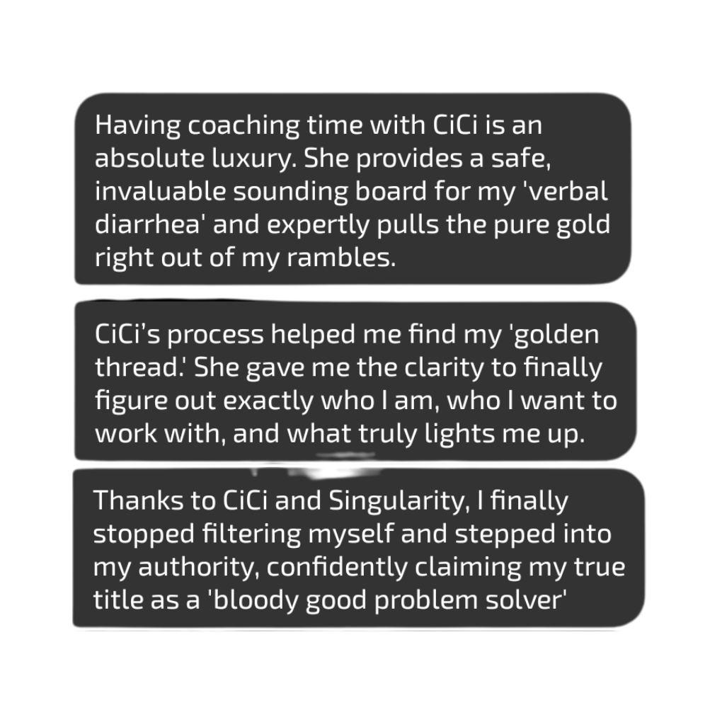“After attending CiCi’s talk on brand messaging, I realised why I was feeling so stuck and frustrated… because my brand wasn’t me! Working with CiCi has reaffirmed everything I knew about how I wanted to work & present myself- by her giving me the space and support to know how to actually go for it.”