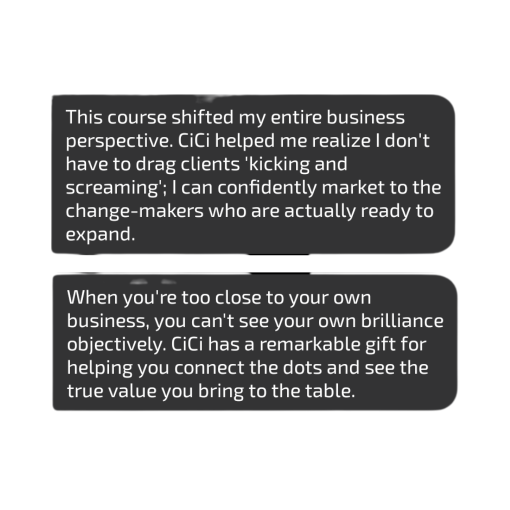 I’ve experienced a significant transformation since working with CiCi- I’ve never used words in this way to attract clients and promote offers.