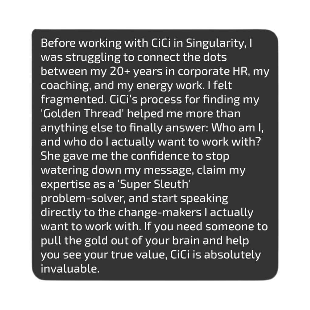 Singularity is a 10-week small group program for established experts who want to elevate their brand positioning by being fully themselves.